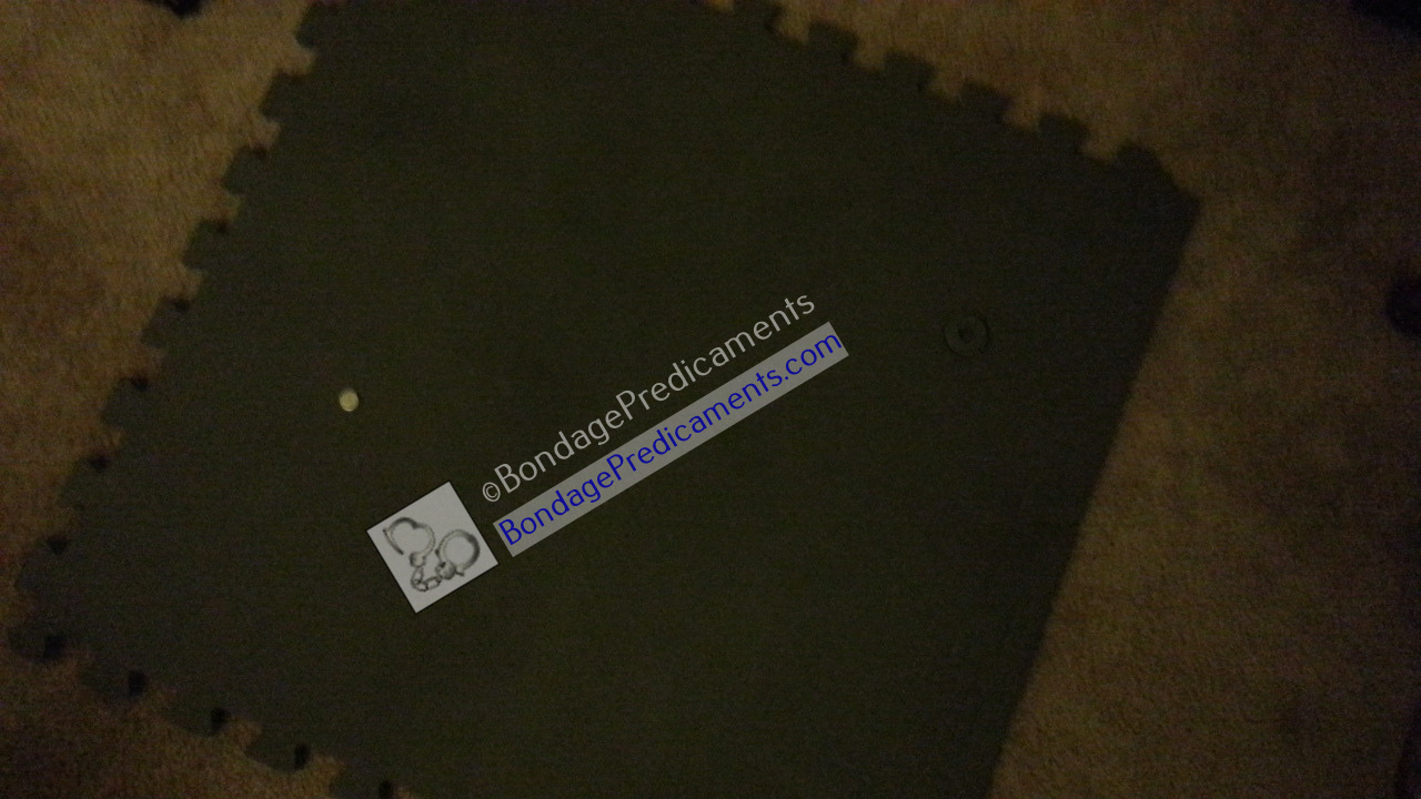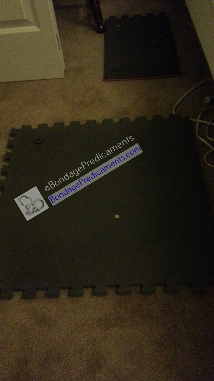 His task: Pick up every magnet and small padlock off the floor, and nothing else. Of course that alone would’ve been kinda boring. So I tied his hands together to restrict his movement, clipped one of the nipple clamps to his right nipple and the other to a rope tied around his low hanging balls. Then I made him pick up one object from one side of the room, then one object from the other side of the room, switching back and forth and alternating nipple clamps that he picked them up with until they were all picked up. Oh, and NO HANDS! Hands were for crawling, not for picking up objects off the floor. I expected to see all magnets and padlocks hanging from those weighted nipple clamps when he was done, and nothing else. If my instructions weren’t followed exactly, he knew he would have to start over…and I just might make it a bit tougher on him the second time.