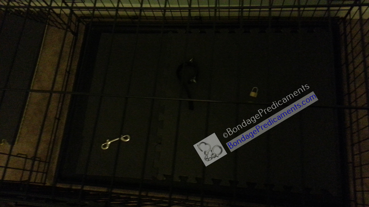 A while back when hushpuppy1980 visited, I came up with a few little games for him to play in the playroom. This was one of them. He brought some nice weighted nipple clamps with removable magnetic weights, so I had to put them to good use. I rearranged the playroom so the bed was in the middle, and there was space (to crawl) all around it. Then I scattered a bunch of magnets and some other metal objects around the room, including inside the cage.