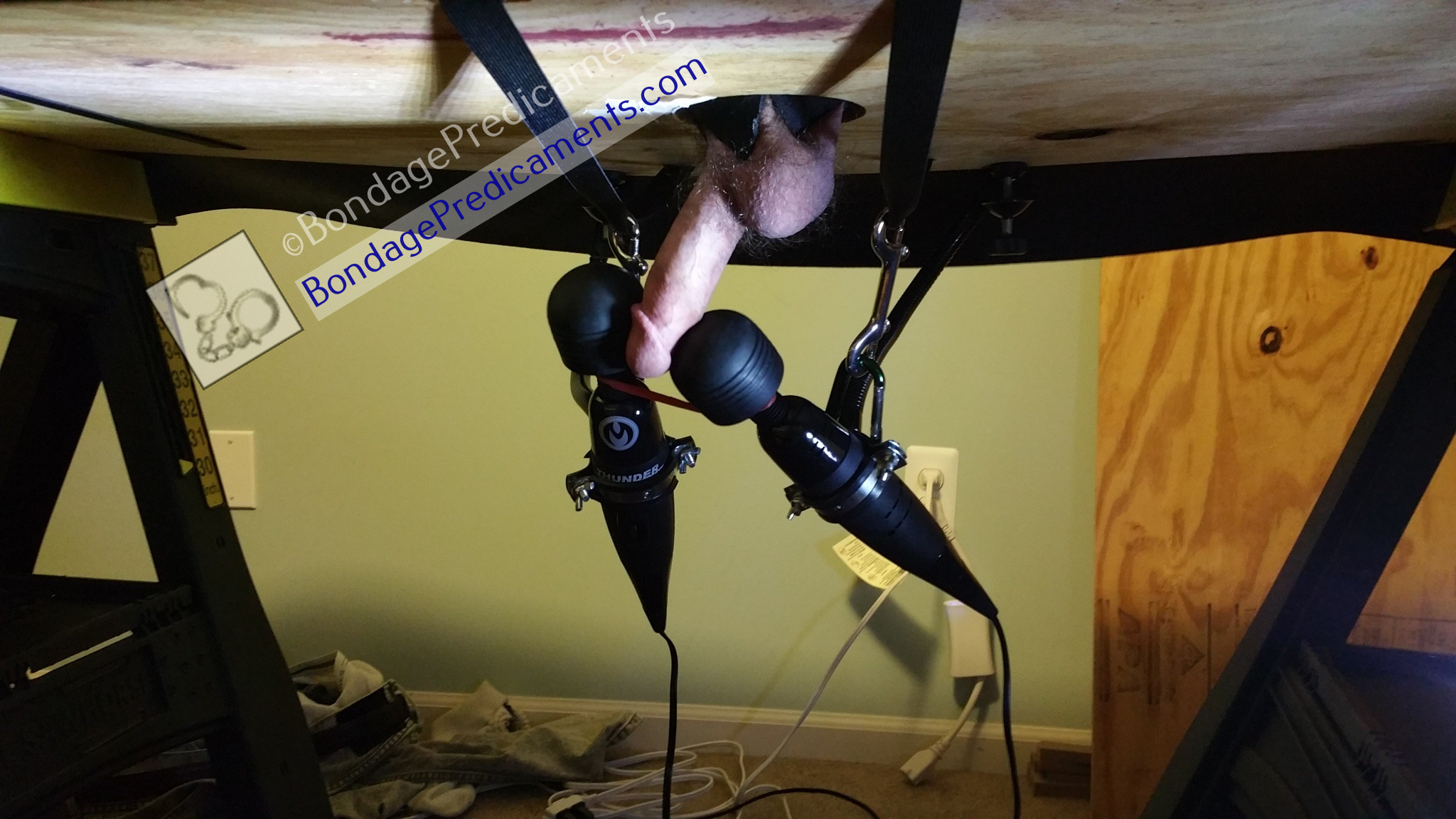 Or maybe you’ll want to mount a few few adjustable wand holders to your new bondage table, put some vibrating wands in them, and position them so they’re held right up against his cock…relentlessly buzzing away!