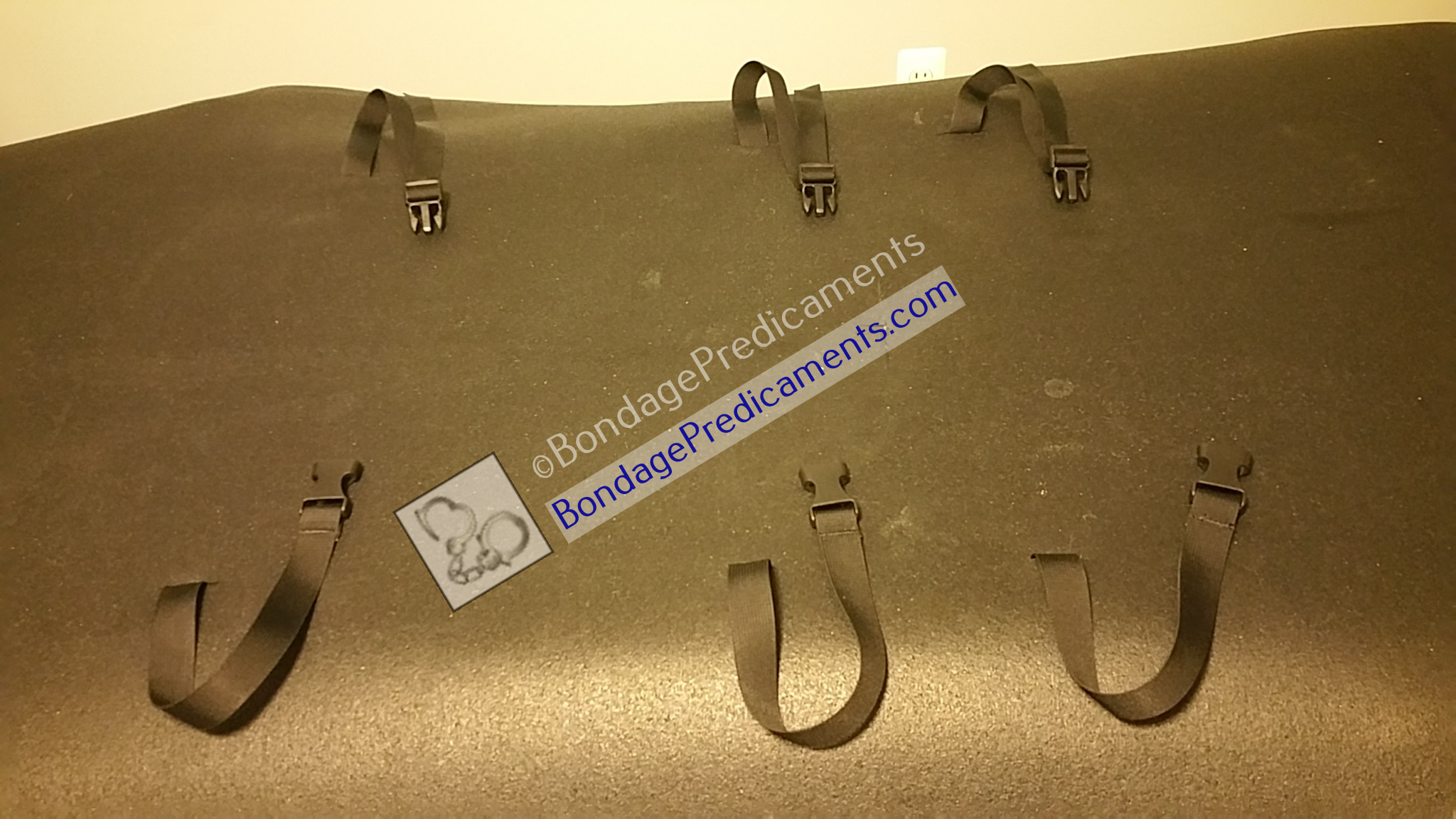 6. Imagine where your sub will be laying across the bondage table and repeat step 5 at other intervals alongside of where will be laying. This will allow more restraint points to keep him in place.