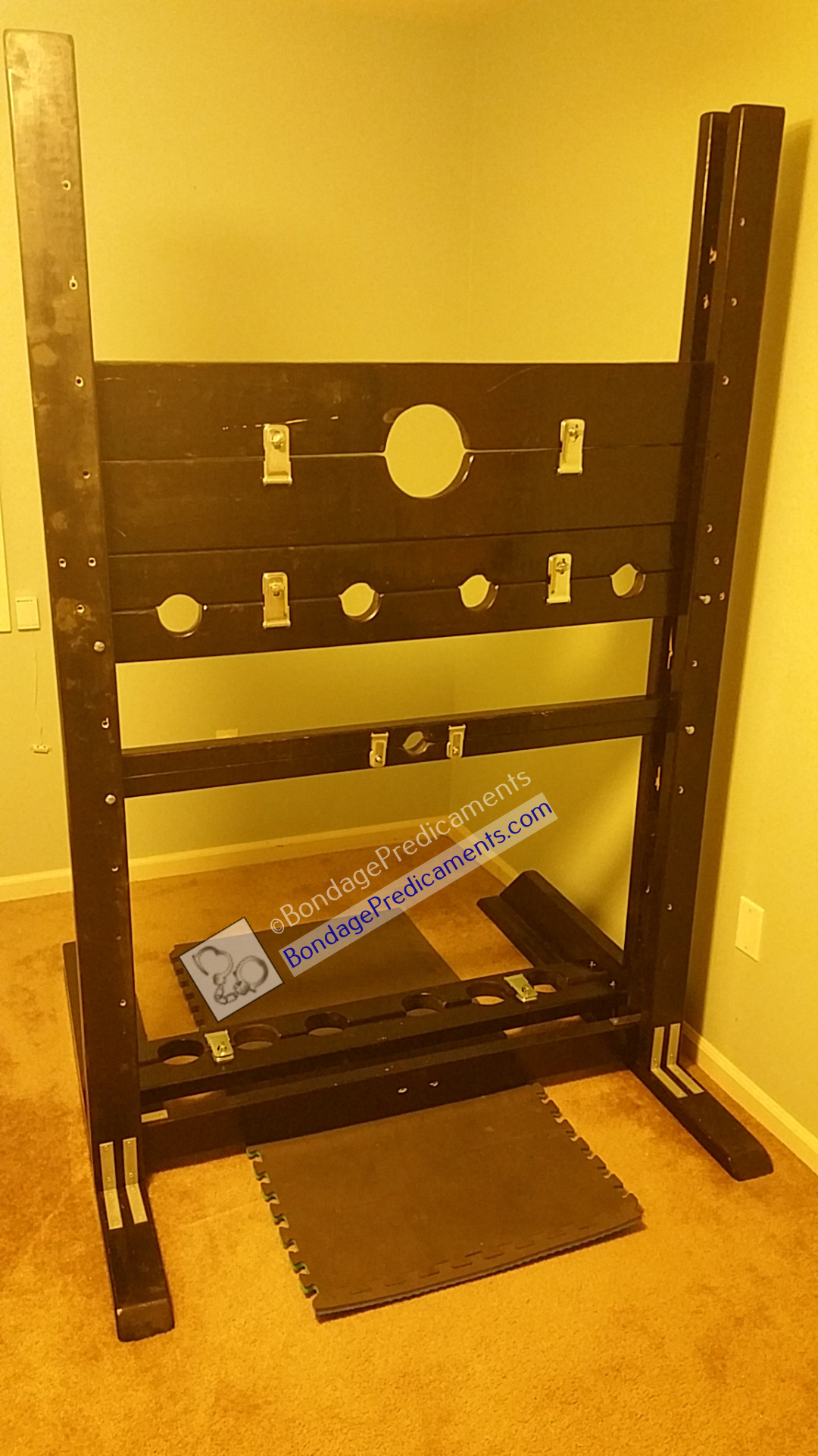 Or maybe I should cuff him to the bondage wall while straddling the wooden horse, making sure he’s forced up on his toes to avoid sitting on the edge of the horse.