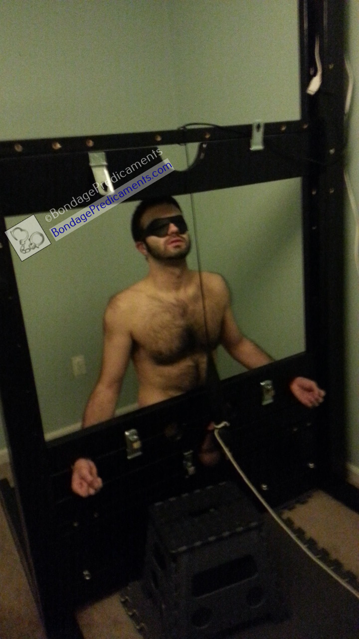 My stocks are pretty versatile. Of course, I had to test that theory a few times. What if I locked a boy in while kneeling on the floor, dick and balls locked in, and hands locked just inches away from his cock? I wonder how tempting it would be for the boy to try to reach his cock. Maybe a little teasing with the vibrating wand might make him try harder… This one has told me it’s difficult to get him off, or even to keep him hard. I love a challenge!