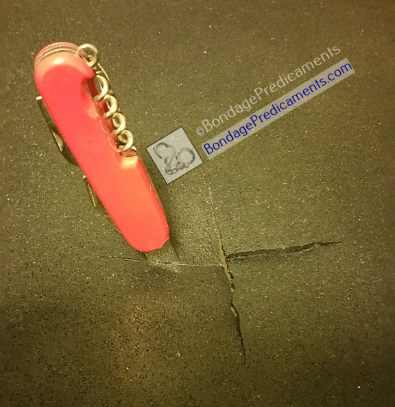 When you’re done playing, make your bondage table disappear so your visitors won’t know of your kinky ways. Just store the plywood under a bed, in your attic, or against a wall in your garage, basement, closet, or anywhere that’s out of the way. You can put the treadmill mat back under the treadmill. You probably won’t even be able to see the slots that you cut in it. If it’s under an exercise bike or other equipment, the slots still shouldn’t stand out as it closes up nicely when laying flat. And as for the sawhorses, well, nobody looks at sawhorses and thinks, “Wow, you kinky fucker!” ;)